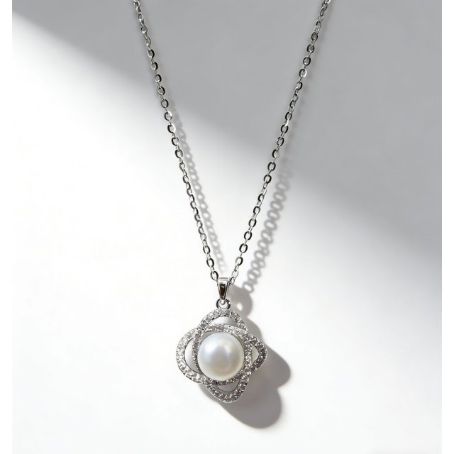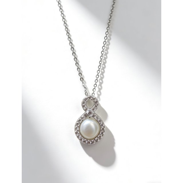 S925.淡水珍珠螺旋圍石頸鏈
